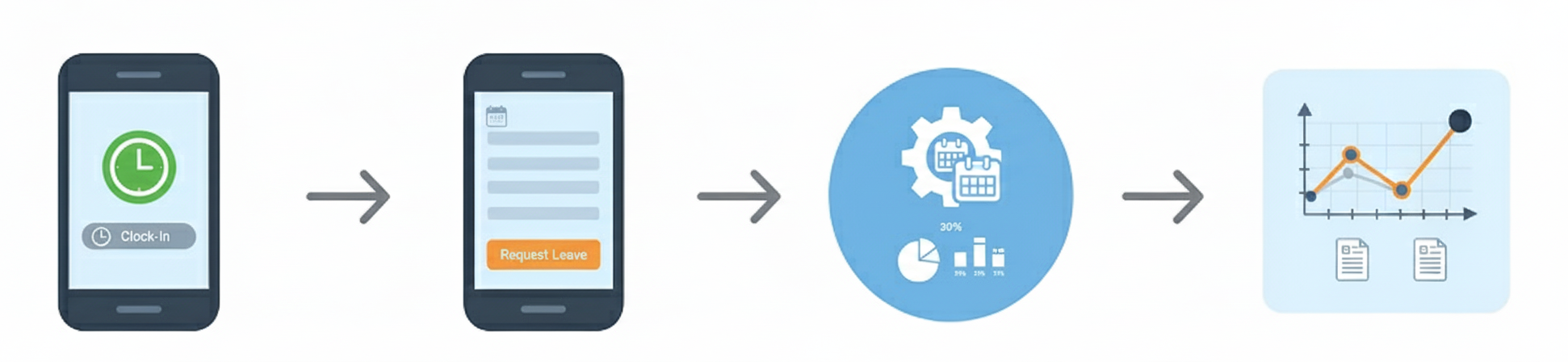 Attendance & Leave Management ensures organizations maintain accurate and transparent records of employee presence. Automated tracking reduces manual errors and eliminates the hassle of paperwork. Employees can easily mark attendance and request leaves through a self-service system, while managers receive instant notifications for approvals. The centralized dashboard gives HR real-time insights into absenteeism patterns, enabling better resource planning. With built-in compliance checks, organizations can effortlessly align with labor laws and company policies. This streamlined process not only improves efficiency but also builds trust among employees by ensuring fair and transparent leave management.