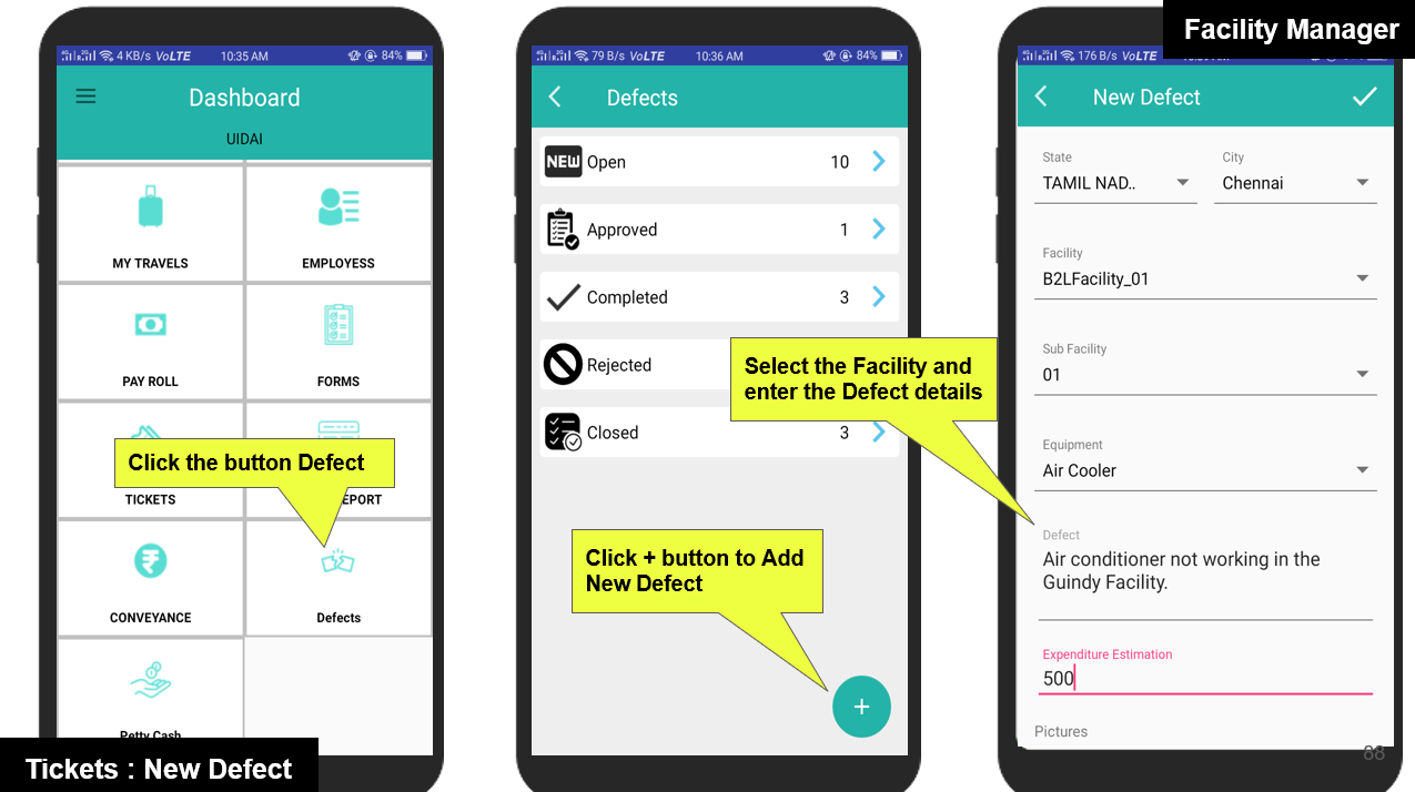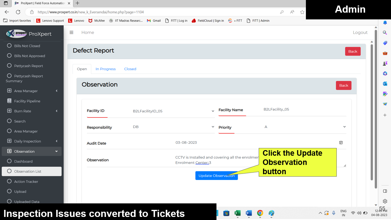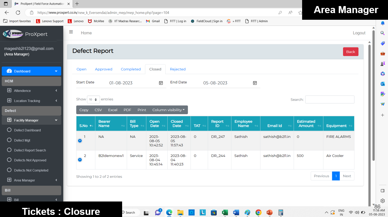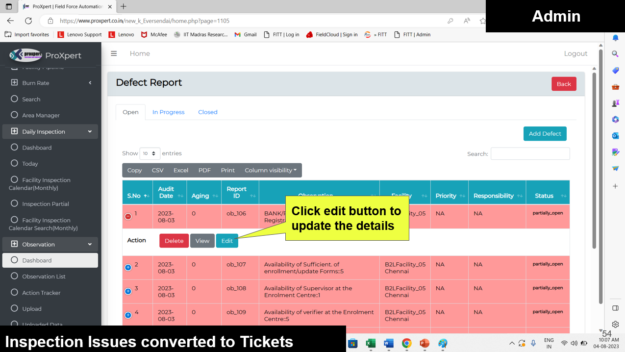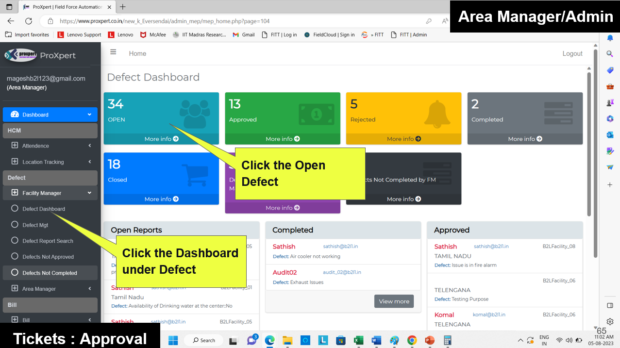 Once the Defect Report is submitted by the Field Manager, it becomes visible in the Admin and Area Manager consoles, where they can either approve or reject the defect.