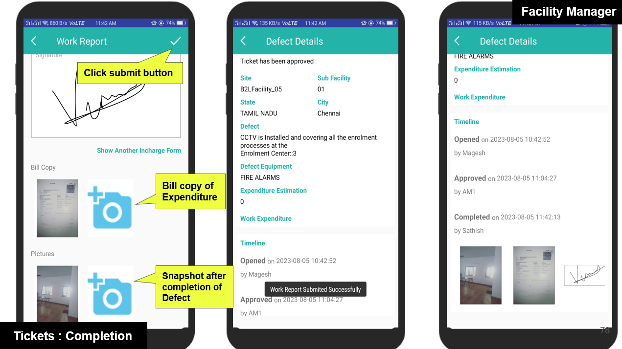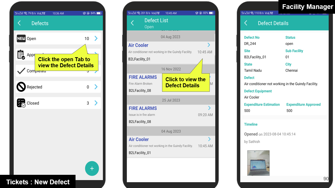 Once the Defect Report is approved by the Admin or Area Manager, the Facility Manager will receive a notification through the app.