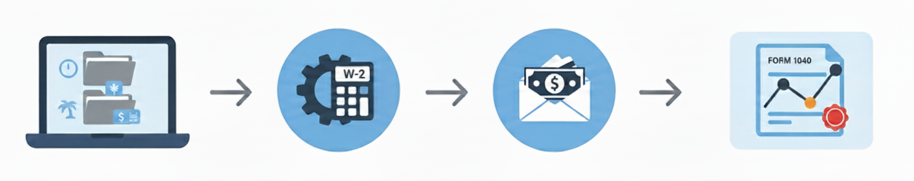 Wages, taxes, and deductions are automatically calculated to prevent errors.