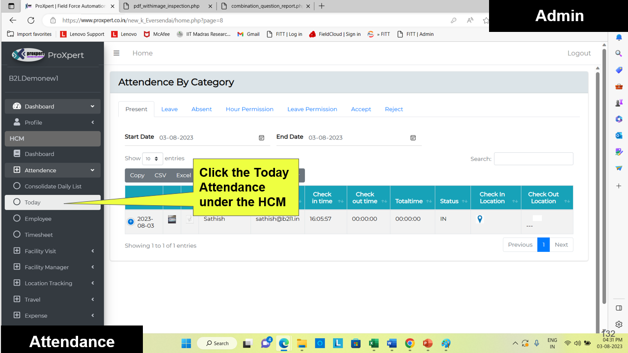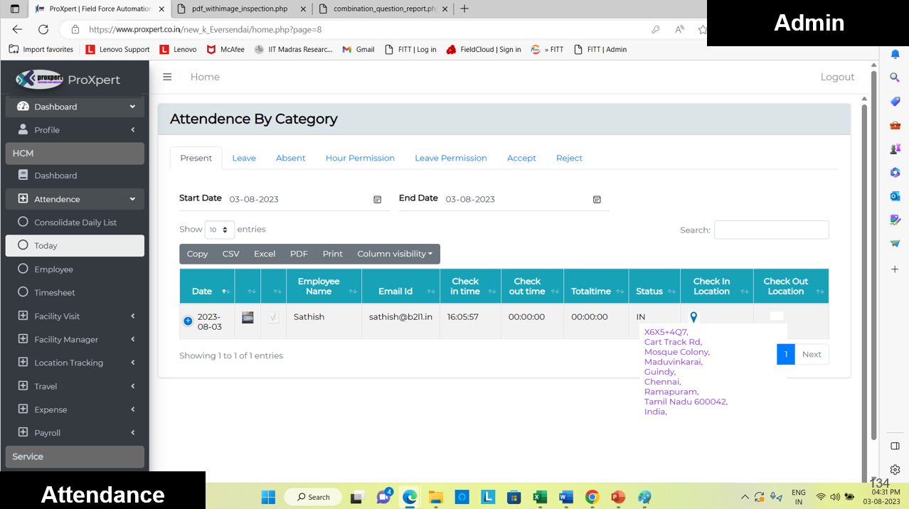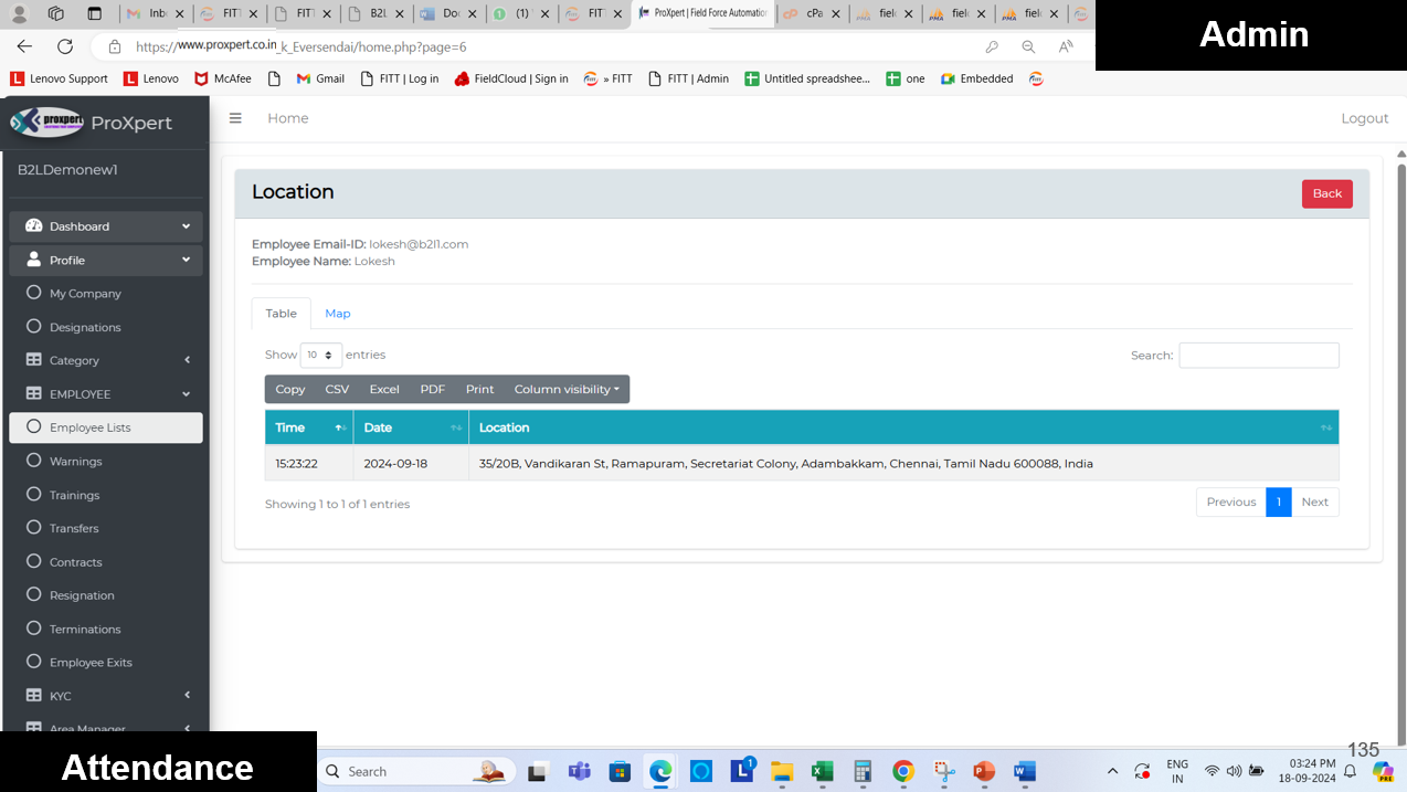 On the administrative side, attendance records and corresponding location data are available in real time through the web console. This provides admins with a clear overview of employee presence, compliance with work locations, and accurate tracking of field activities—ensuring transparency and accountability across the organization.
