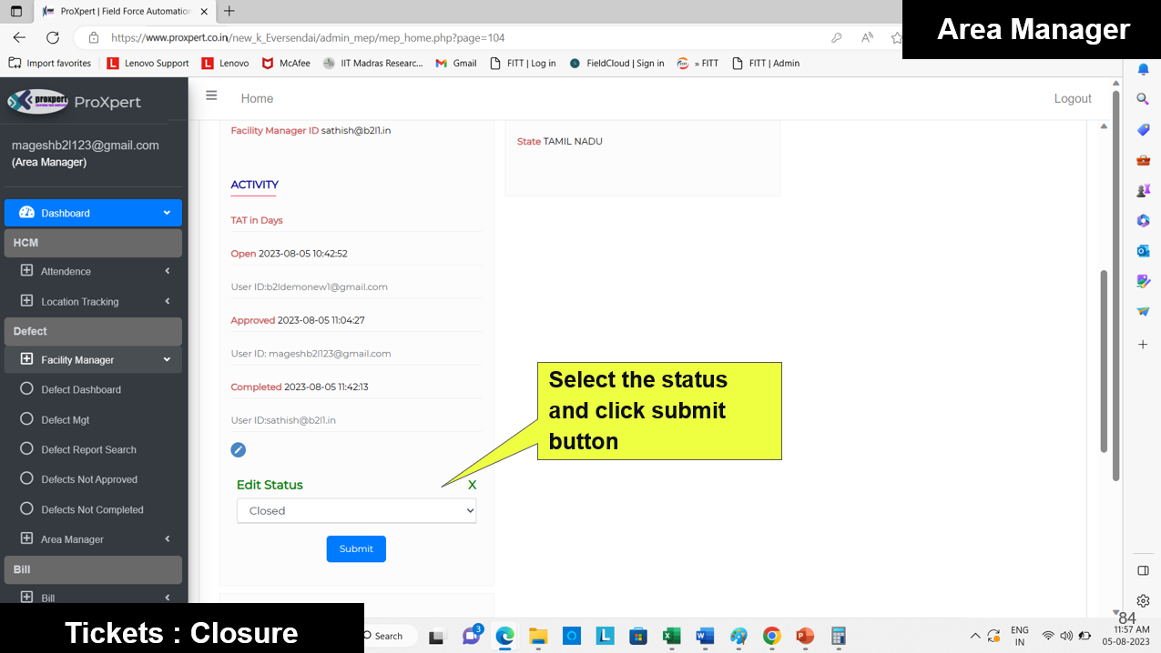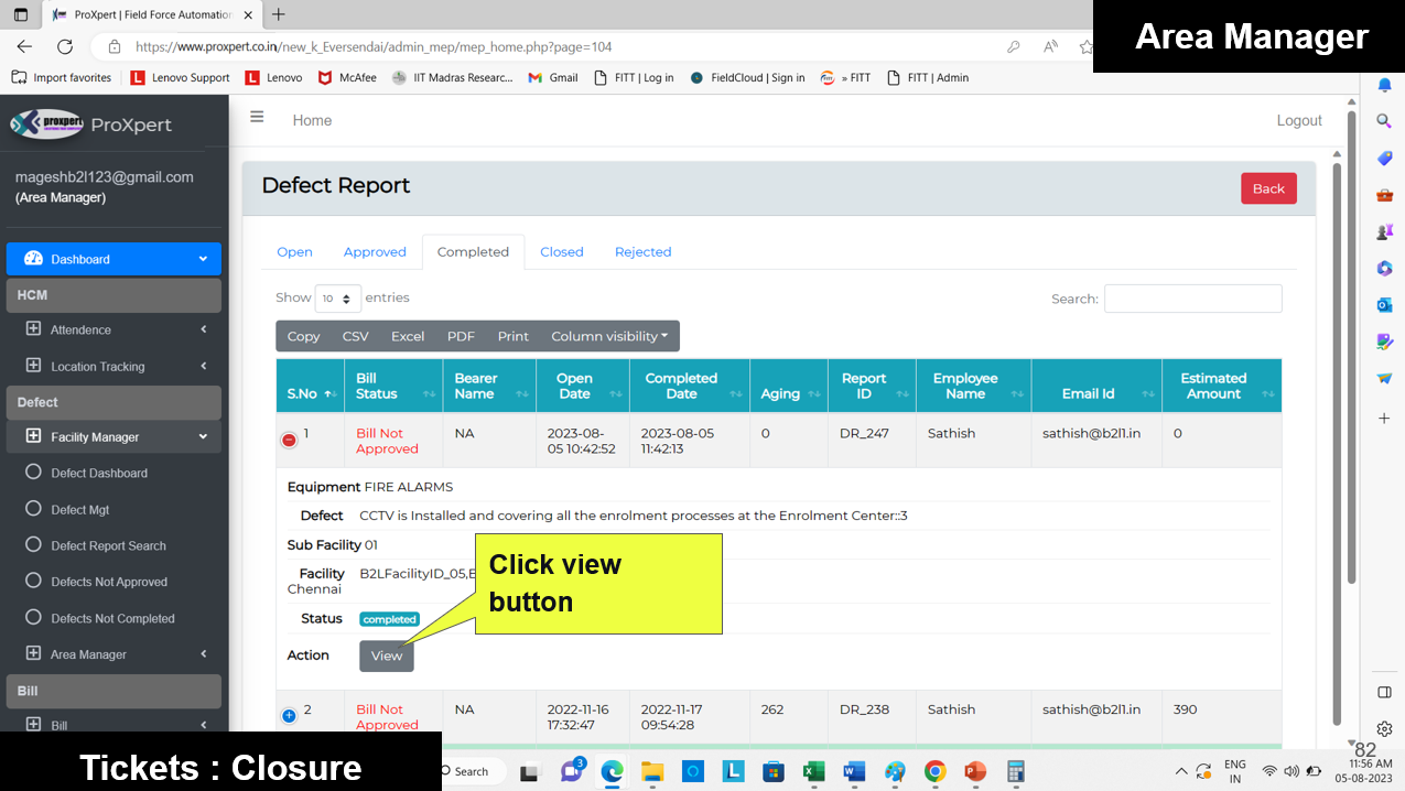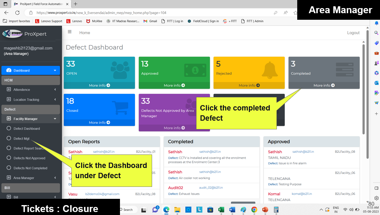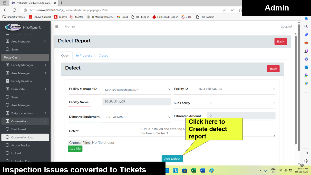 Once the Defect Report is submitted by the Field Manager, it becomes visible in the Admin and Area Manager consoles, where they can either approve or reject the defect.
