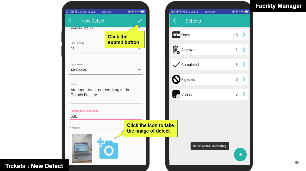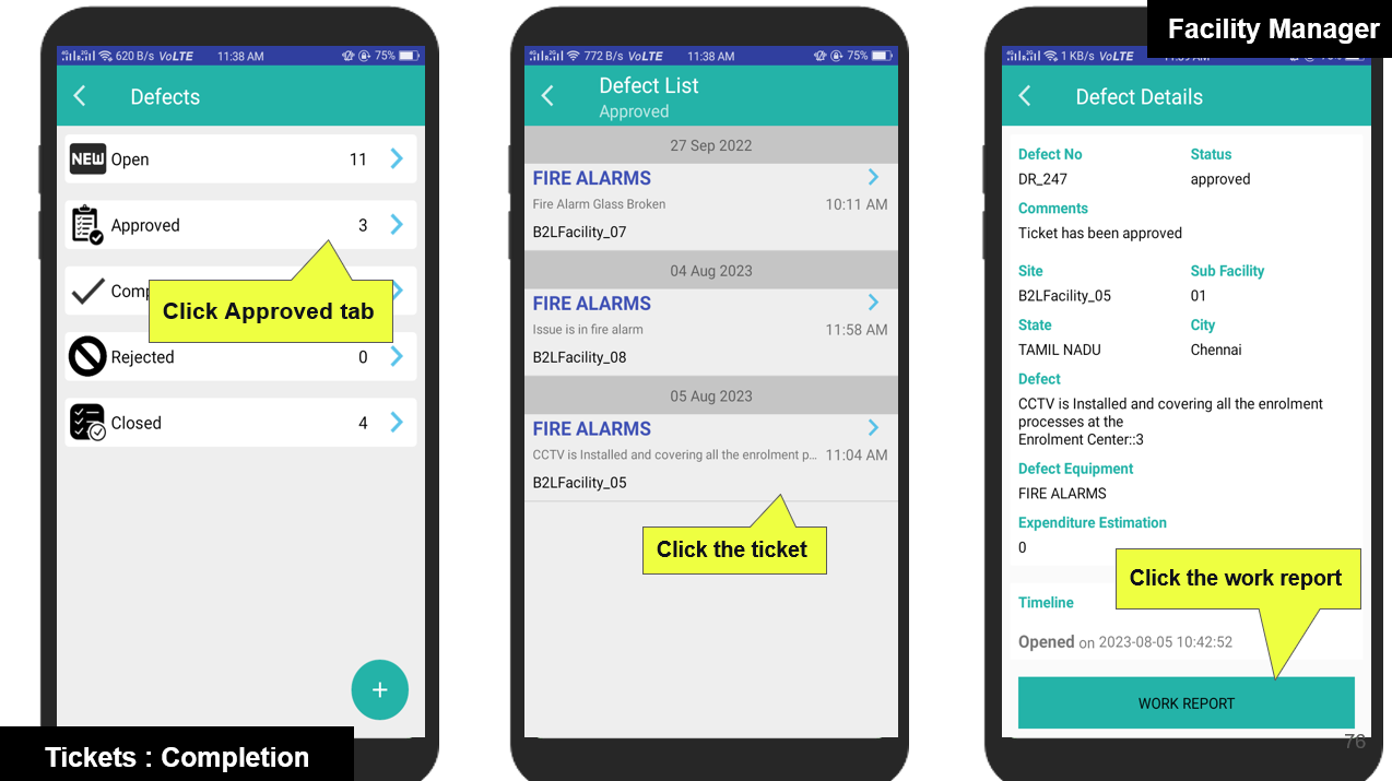 Once the Defect Report is approved by the Admin or Area Manager, the Facility Manager will receive a notification through the app.