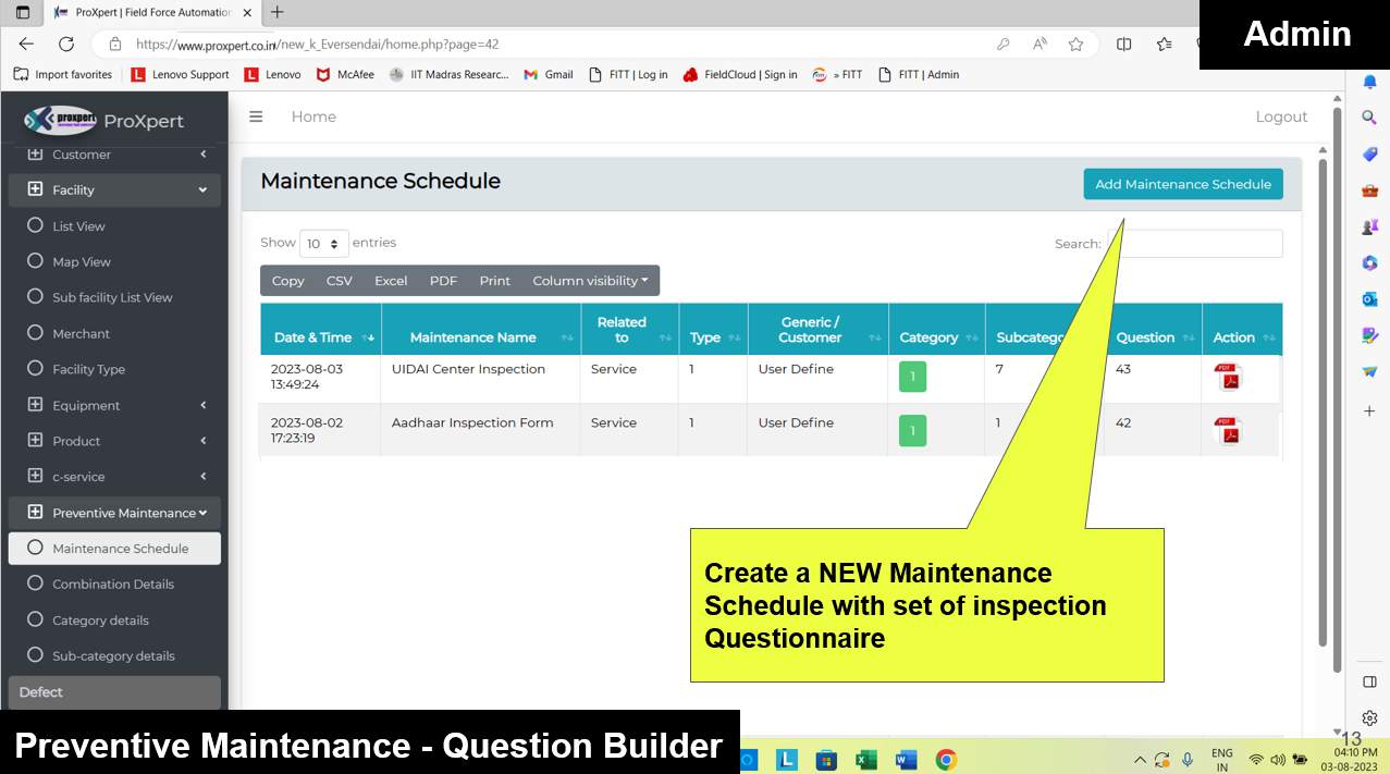 Once Inspection form is Submitted by Field manager, the admin can view the Inspection Reports at backend console.