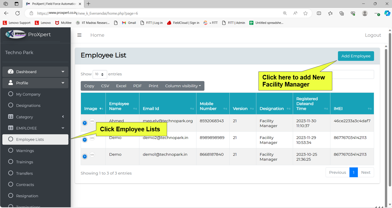 - Facility Manager Registration